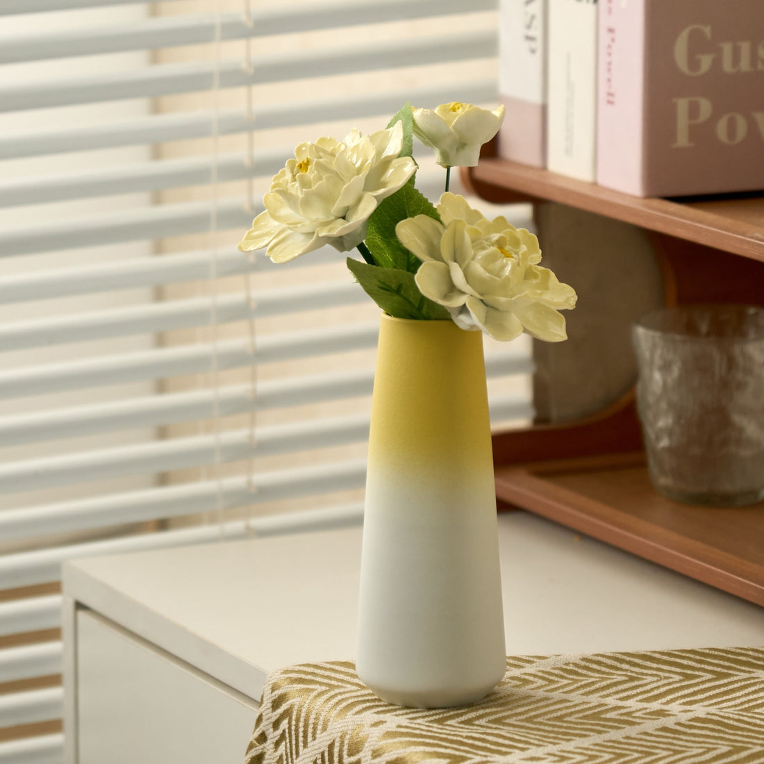 "The Sunshine Peony" Set | Handcrafted Porcelain Flowers in Ceramic Vase