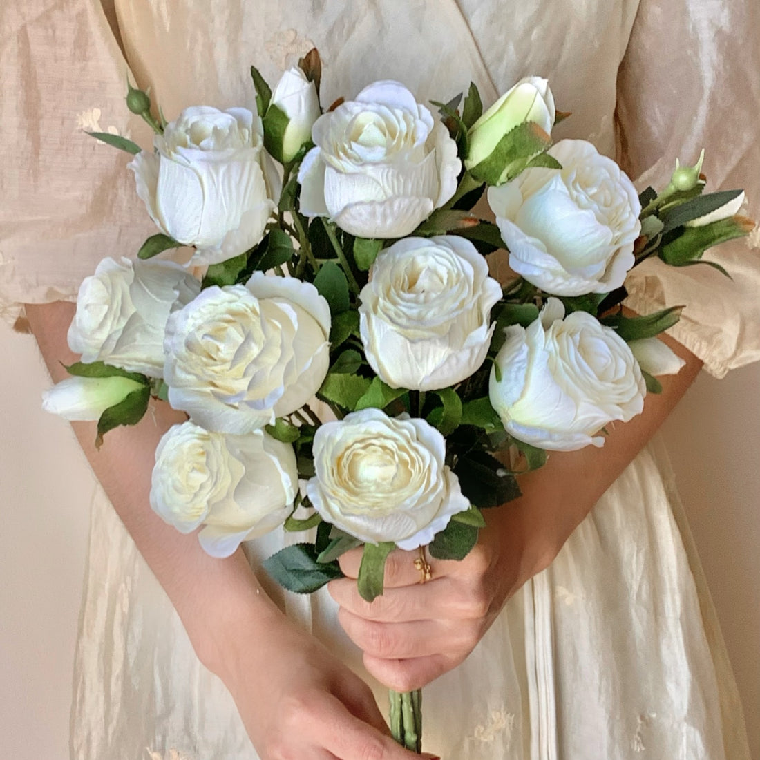 Realistic English Rose Spray | Multi-Head Faux Rose Stem for Bouquets