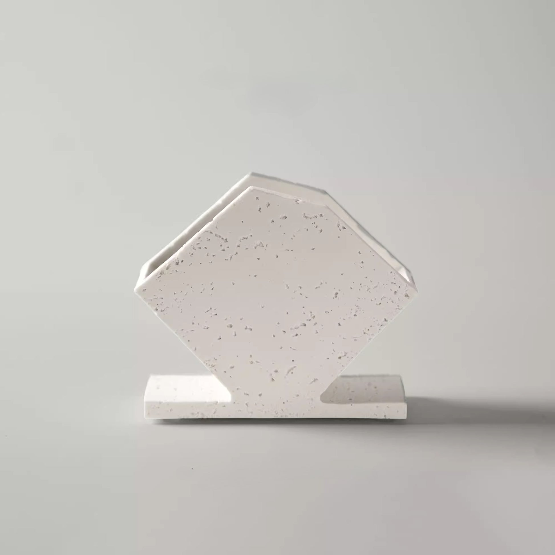Elevate your tabletop with a piece that blurs the line between utility and fine art. Our Geometric Ceramic Napkin Holder features a bold, deconstructed polygonal silhouette inspired by modern architectural forms. Its raw, speckled sandstone texture provides a tactile experience that brings an earthy, grounded soul to your dining space.